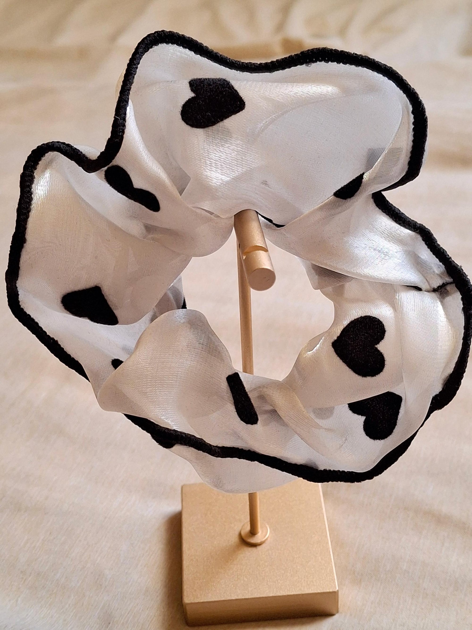 Original product name: Black and White Organza Scrunchies/ Black and White Hair Ties/ Polka Dot Hair Bands/ Hair Accessories/Gift Under 20/ Heart Hair Scrunchie