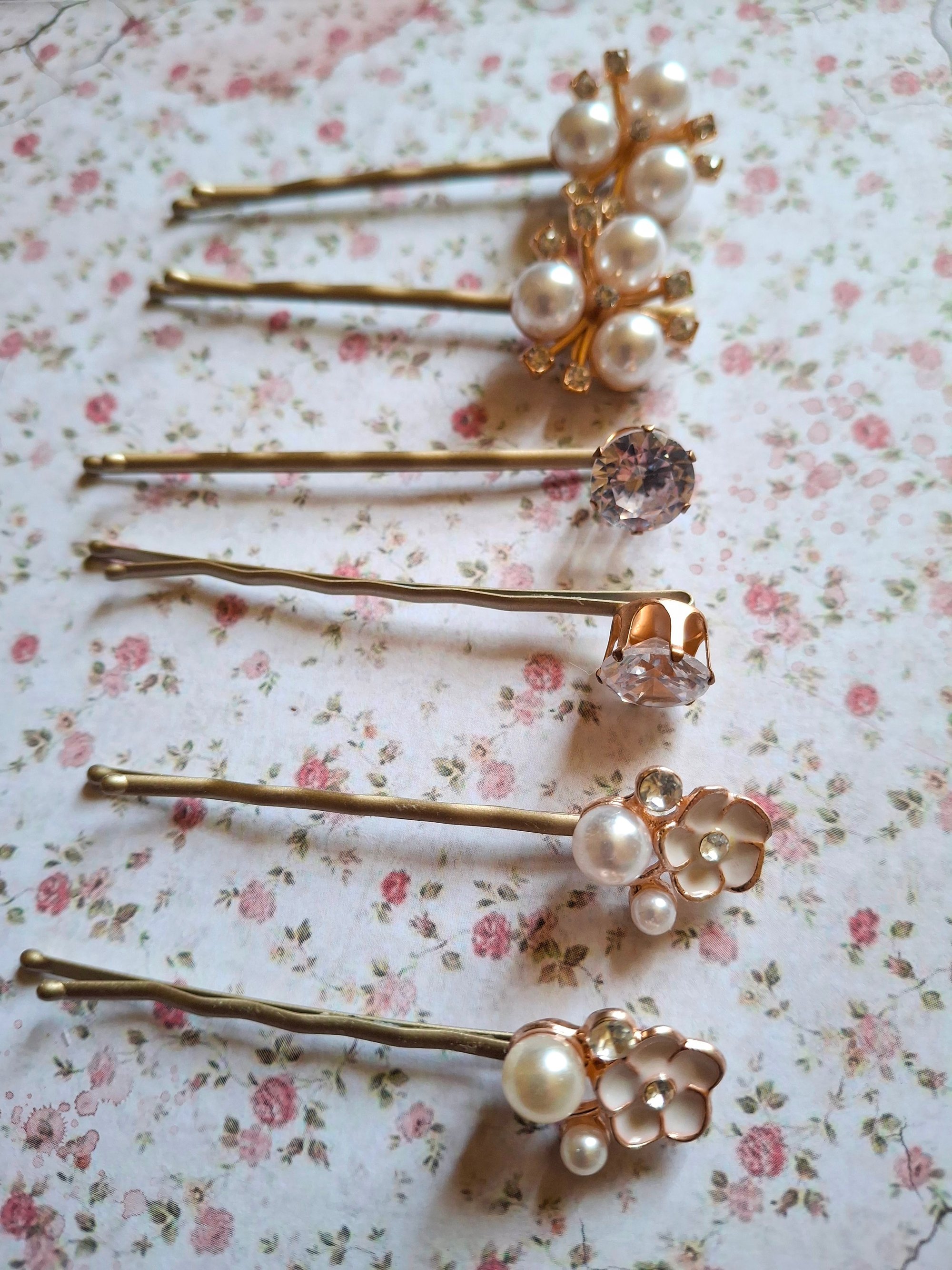 Lovingly handmade and absolutely adored, this bestselling set adds a gentle sparkle to any moment—especially “I do.” With soft faux pearls, delicate floral rhinestones, and a mix of dreamy designs, these six bobby pins bring warmth, elegance, and a personal touch to your hairstyle. A favorite among brides and beauty lovers alike, they’re perfect for wedding days, fancy nights, or just because you deserve to shine.