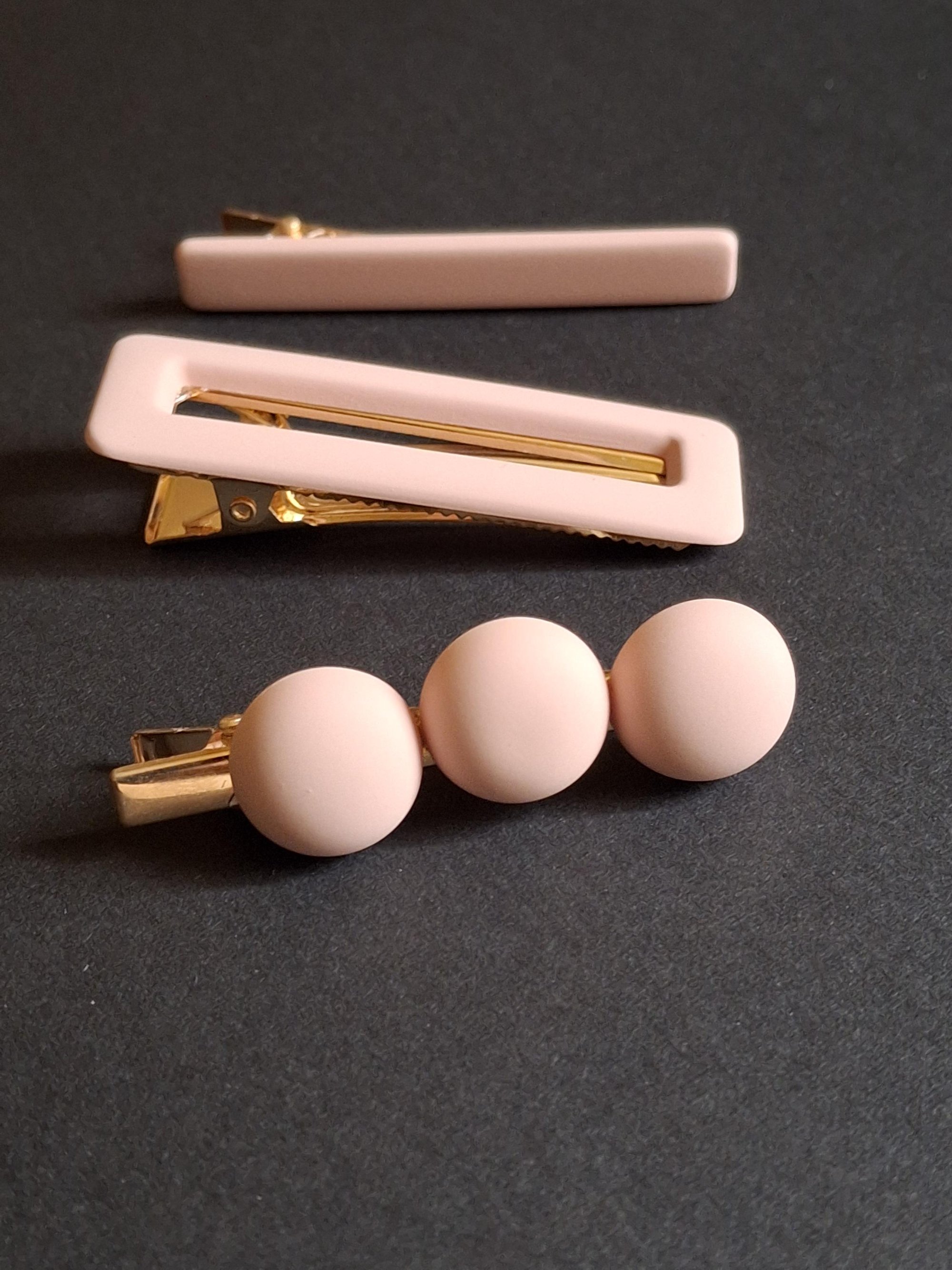 Enhance your hairstyle with this charming Salmon Pink Hair Set, featuring three different hair clips/bobby pins in a lovely shade of salmon pink. Whether you're looking to add a pop of color to your everyday look or searching for the perfect gift, this set is an ideal choice.