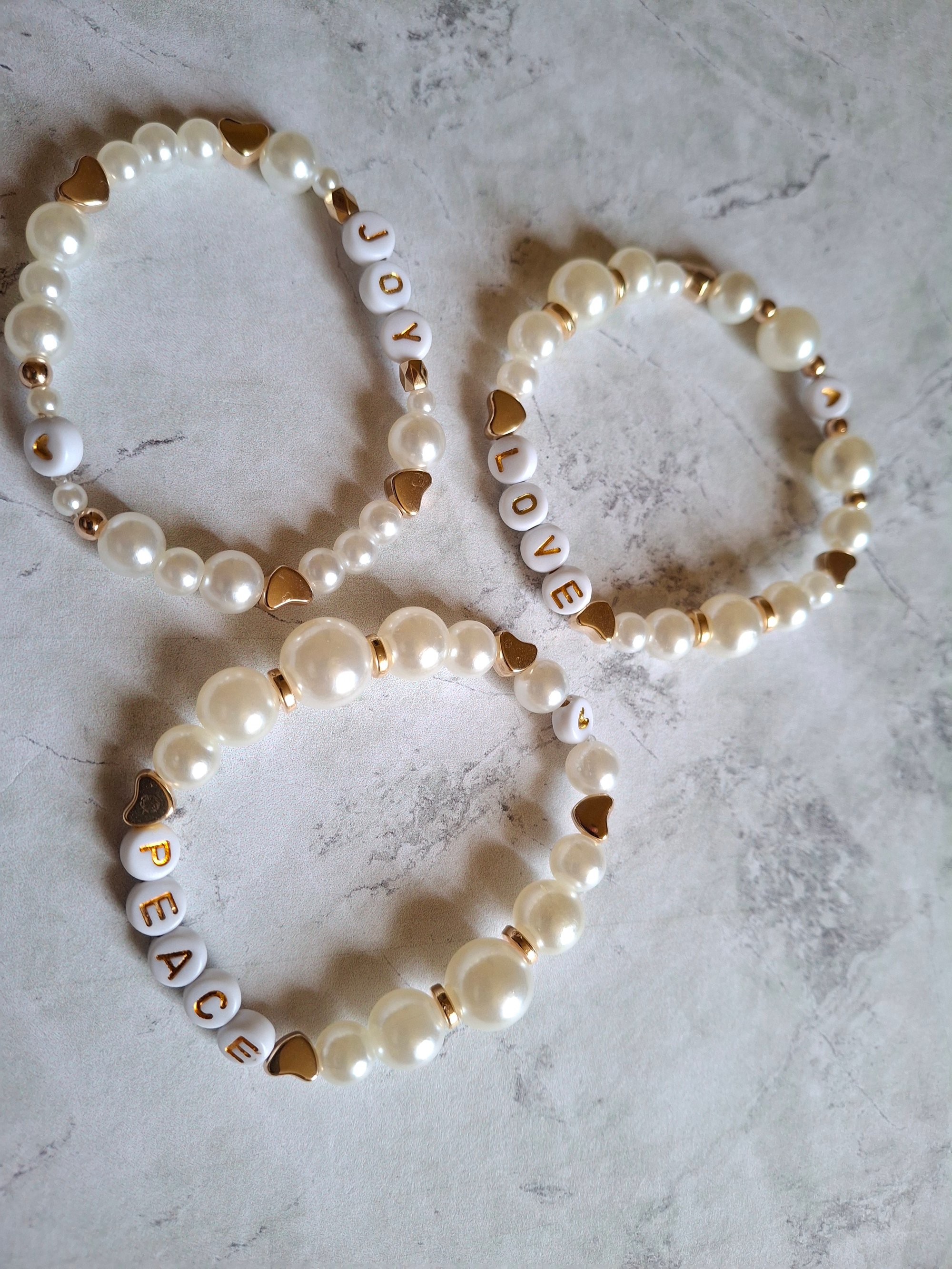 Trio of Intentions – Faux Pearl Bracelet Set with Gold Accents
